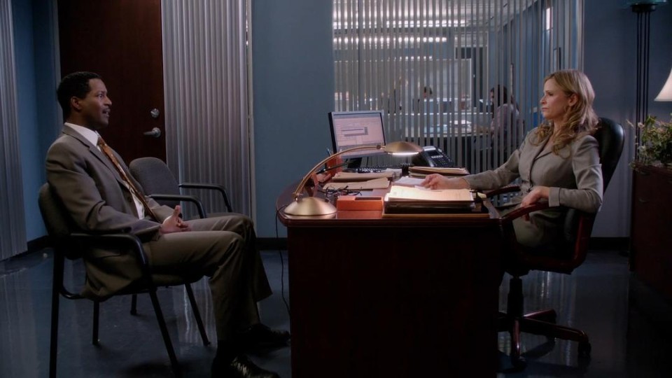 在超长剧集里,难免会碰到一些很会钻法律空子的罪犯,或因其他执法人员的保守(第二季检察官不打赢不了的案子,第五季军官要求跟罪犯签豁免协议),或因法律确实缺少规定,这时候Brenda便会巧妙安排,让犯罪嫌疑人得到该有的制裁,这里难免涉及对法律的擦边球。这个系列里很多下面这样的镜头——人物站在警局的竖百叶窗后凝视,镜头语言已经很明显,执法人员都在条条框框里行动,我一直相信,Brenda已经做到了最好。