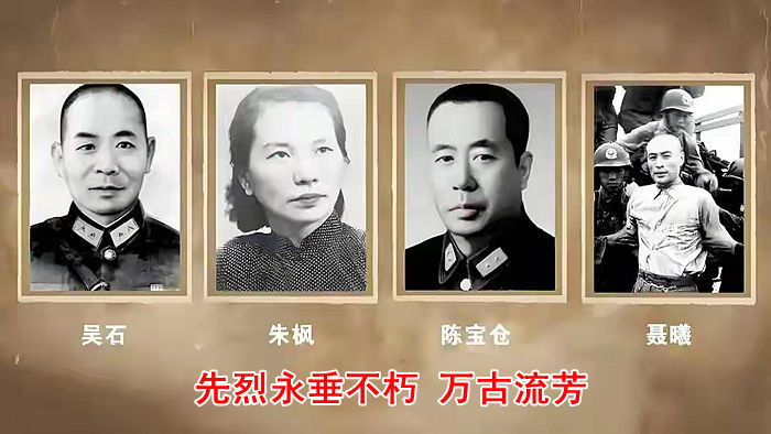 为解放台湾英勇献身的吴石、朱枫、陈宝仓、聂曦等烈士永垂不朽,万古流芳。